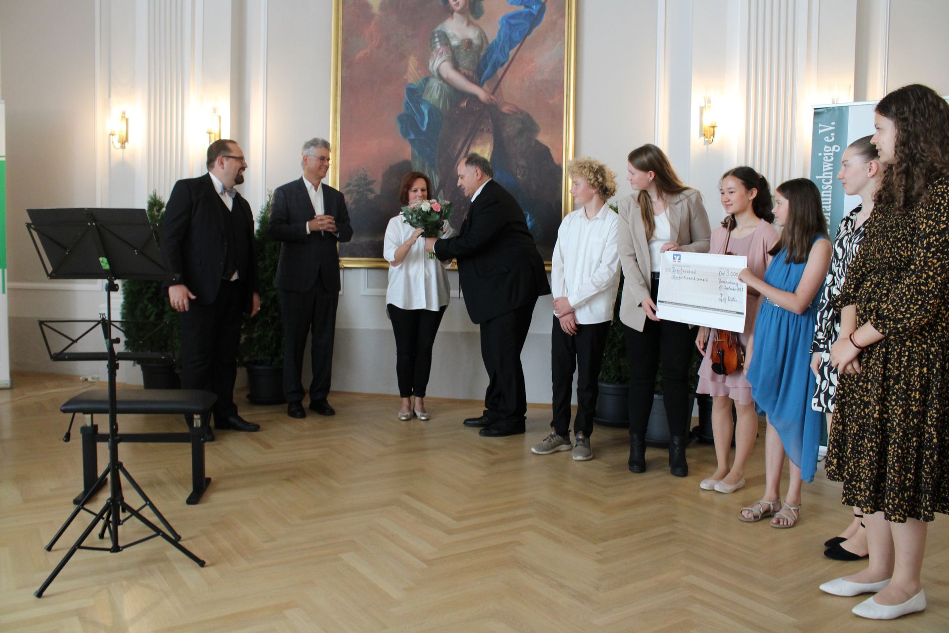 Von der Arbeit des Vereins KinderKlassik.com war die Frauen-Druiden-Loge Brunonia zu Braunschweig so begeistert, dass sie den Verein für den Förderpreis des Fördervereins der Groß-Loge Niedersachsen im Deutschen Druiden-Orden vorschlug und den Zuschlag bekam. In einem feierlichen Rahmen wurde der Förderpreis, der mit 3.000,- Euro dotiert ist, am Samstag, den 23. September 2023 im Minerva-Saal im Haus der Bruderschaft übergeben. Die zahlreichen Gäste, darunter als Vertreter der Stadt Braunschweig Dr. Ulf Hilger vom Kulturdezernat, Vertreter des Präsidiums des Deutschen Druiden-Ordens, der Groß-Loge Niedersachsen, zahlreiche Mitglieder der niedersächsischen Logen sowie geladene Freunde und Unterstützer der Frauen-Loge Brunonia, waren von den musikalischen Darbietungen der jungen Musiker im Alter von sechs bis siebzehn Jahren hellauf begeistert. Die Vorsitzenden des Vereins KinderKlassik.com e.V., Frau Ilka Schibilak und Herr Dr. Volker Eckhardt, stellten verschiedene ambitionierte Projekte des Vereins vor. Die Glanzpunkte der Veranstaltung aber waren die Beiträge der Kinder und Jugendlichen des Vereins: Der Gesang von Lara Ziegler (sechs Jahre jung!), am Flügel Henriette Klippel, Annabelle Frahm und Louise Verhulst, an der Geige Elisabeth Maria Rehs, Ayda Kadkhoda an der Querflöte sowie Mauritius Weiss an der Gitarre bereiteten den Zuhörern einen durchaus als professionell zu bezeichnenden Hörgenuss. Dabei waren nicht nur Komponisten wie beispielsweise Bach und Mozart zu hören, ein Stück wurde von der 17-jährigen Henriette Klippel selbst komponiert.