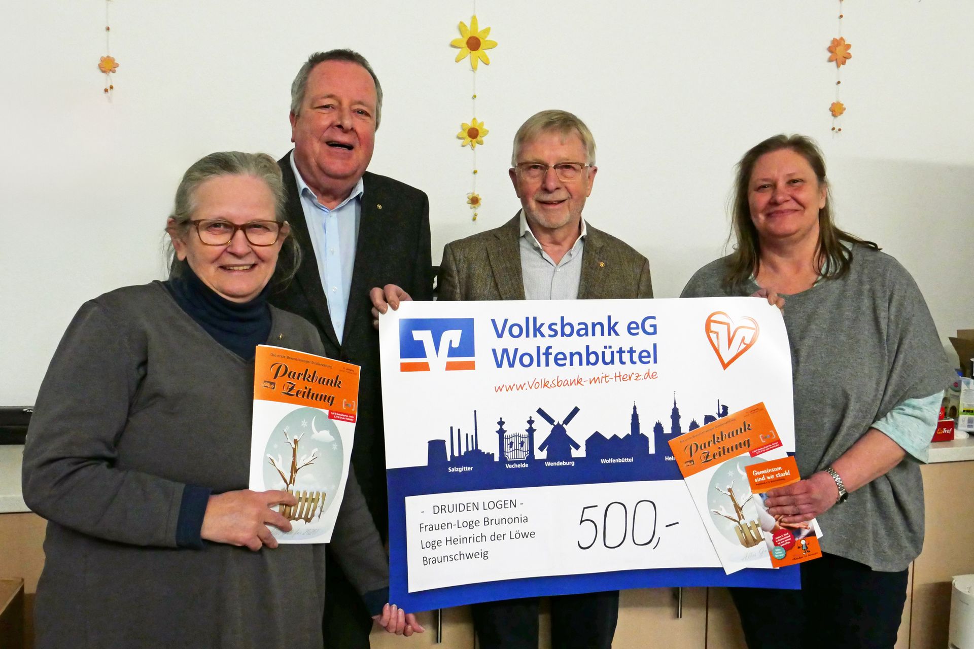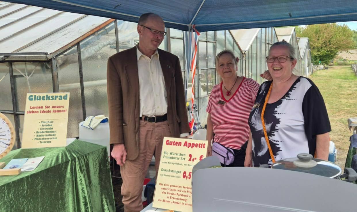 Den Erlös unseres gemeinsam mit den Brüdern der Loge Heinrich der Löwe betriebenen Informationsstandes auf dem Riddagshäuser Dorfmarkt (Ende August 2025) haben wir gestern an die Aktion Kinder in Armut (Parkbank e.V.) übergeben. Die Vorsitzende von Parkbank e.V. Frau Fricke (auf dem Foto rechts) war sichtlich erfreut über unsere Spende, die im letzten Sommer durch den Verkauf von Würstchen, herzhaftem Gebäck, Mehl und Honig erwirtschaftet wurde (aufgestockt durch Spenden der beiden Braunschweiger Logen Brunonia und Heinrich der Löwe sowie der Druidenhilfe).
