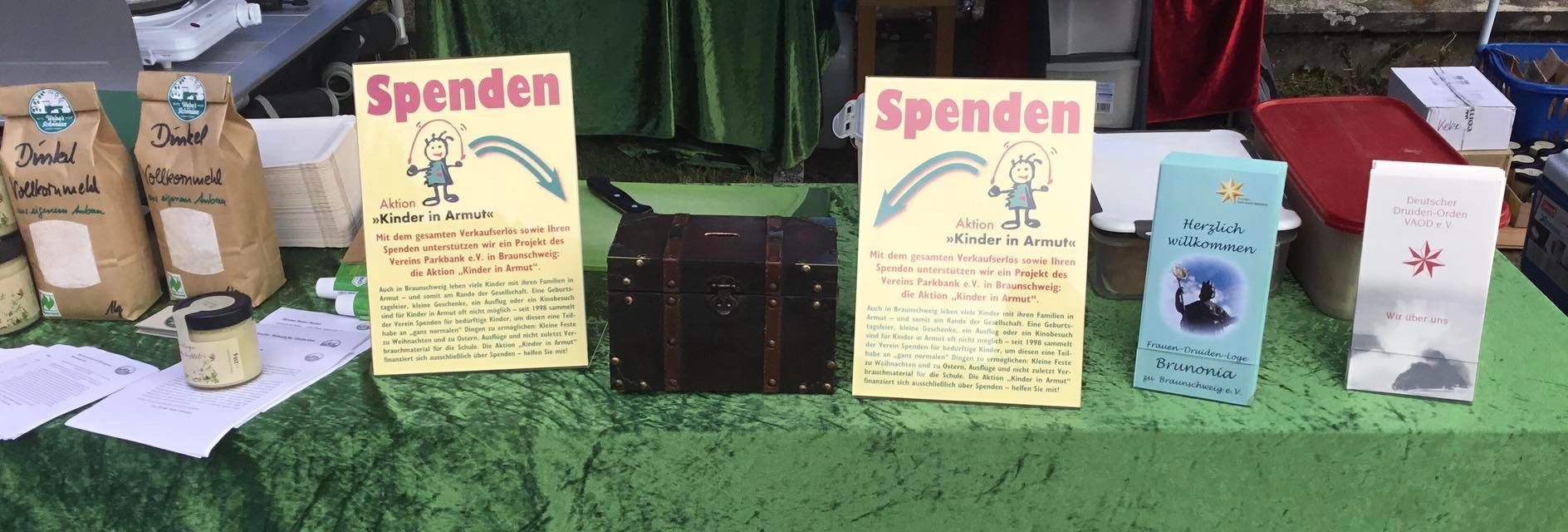 Im Jahr 2023 unterstützte die Frauen-Druiden-Loge Brunonia e.V. mit ihrer Sozialauktion ein Projekt des Vereins Parkbank e.V. in Braunschweig: die Aktion „Kinder in Armut“. Auch in Braunschweig leben viele Kinder mit ihren Familien in Armut – und somit am Rande der Gesellschaft. Seit 1998 sammelt der Verein Spenden für bedürftige Kinder, um diesen eine Teilhabe an „ganz normalen“ Dingen zu ermöglichen: Kleine Feste zu Weihnachten und zu Ostern, Ausflüge und nicht zuletzt Verbrauchsmaterial für die Schule. Die Aktion „Kinder in Armut“ finanziert sich ausschließlich über Spenden.